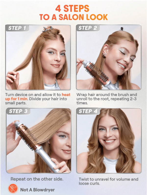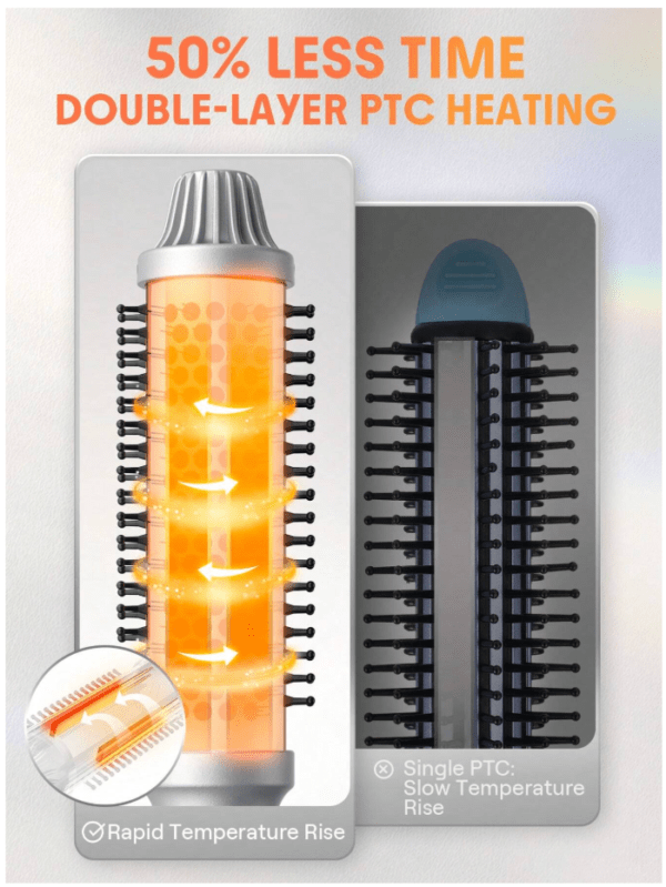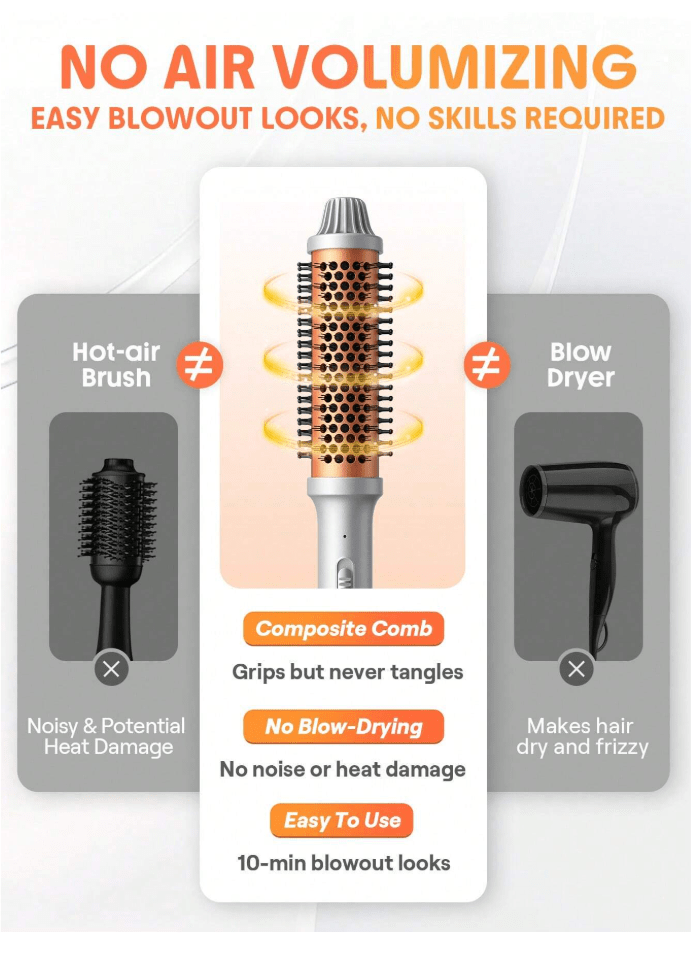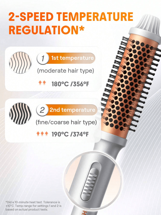 [طراحی دمای 2 سطح، مناسب برای 3 تکنیک یک ظاهر طراحی شده] برس Thermal Blowout دارای طراحی دمایی 2 سطحی است که برای افراد مختلف مناسب است (موهای ریز/درشت-2 سطح؛ موی متوسط-1 سطح). شما می توانید با توجه به کیفیت موهای خود دمای مناسب را برای حالت دادن انتخاب کنید. برس Thermal Blowout برای 3 تکنیک حالت دهی مناسب است که می توان آنها را به صورت عمودی، افقی و صاف کرد و نیازهای چندین مدل مو را برآورده کرد و برای افراد بیشتری مناسب است.