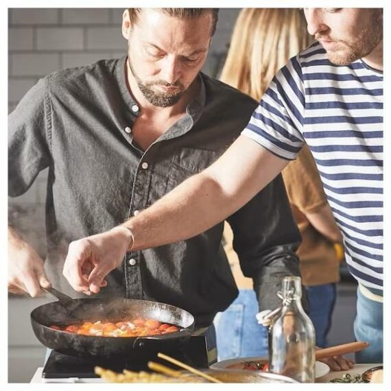 تابه 28 چدنی ایکیا IKEA-VARDAGEN یک تابه تمام فلزی بسیار مقاوم است. این تابه از فولاد کربن دار ساخته شده و هیچ گونه روکشی ندارد. به همین خاطر از نظر سلامتی کاملا ایمن است. دو دسته فلزی بلند و کوتاه در دو طرف تابه قرار دارد تا بلند کردن آن آسان تر باشد. به خاطر تمام فلزی بودن این تابه، میتوانید آن را داخل فر نیز استفاده کنید.