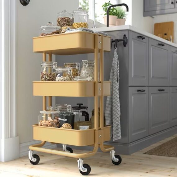 این ترولی ایکیا در کوچکترین فضاهای منزل جای می گیرد و می توان آن را به هر جایی که نیاز دارید جابجا کنید.