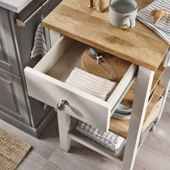 ترولی چرخدار آشپزخانه سفید/بلوط ایکیا مدل STENSTORP