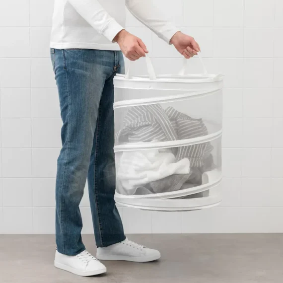 حمل این سبد سبک با دسته آسان است و ساخت هوای آن به لباس شما اجازه تنفس می دهد. این برای لباسشویی طراحی شده است، اما بادوام است و برای اسباب بازی های نرم نیز استفاده می شود.