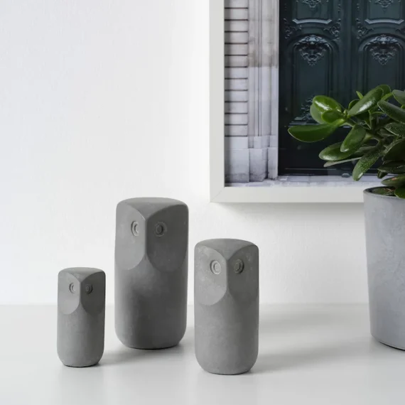 با سه تزئین جغد دوستانه از بتن از مهمانان پذیرایی کنید. همچنین اگر زمان صرف غذا در فضای باز است، به عنوان وزنه سفره یا جا دستمال سفره مناسب است.