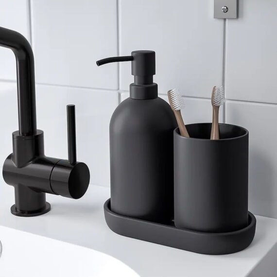 ابعاد:ابعاد بستهبندی: ۲۵x۲۰x۱۵ سانتیمتر, ابعاد پمپ مایع ۱۹x۸x۸, ابعاد جا صابونی ۱۸x۹x۲, ابعاد جا مسواکی ۱۱x۸x۸