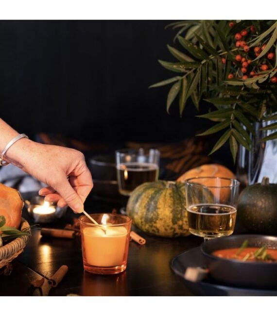 - شمع معطر ASPSKOG با رایحه هایی از کدو تنبل و پرتقال و دارچین ، حس گرم و تندی را به محیط خانه ی شما انتقال می دهد.
