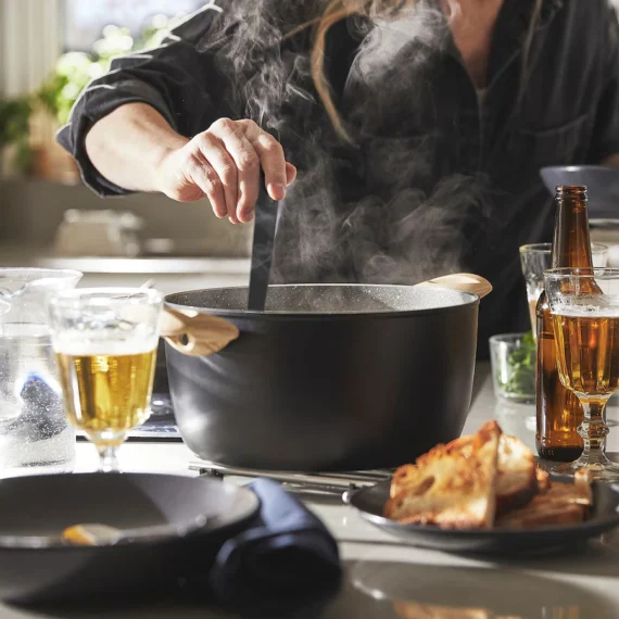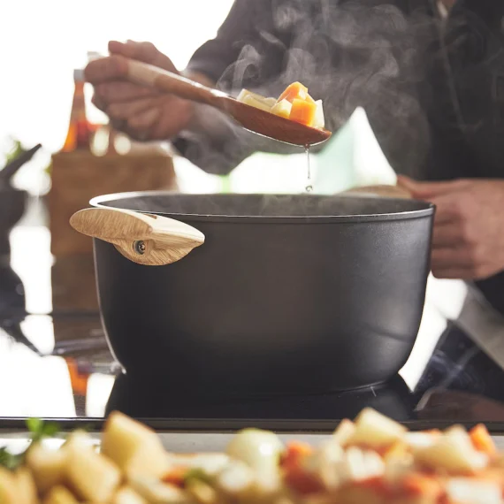 در این سری شیک تمامی ظروف دارای روکش نچسب سرامیکی سل ژل هستند که خطر سوختن و چسبیدن غذا را کاهش می دهد. تمیز کردن ساده – با دستگیره های مناسب برای بلند کردن آنها آسان است.