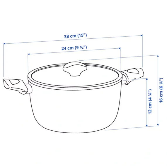 قابلمه درب دار روکش نچسب مشکی ایکیا مدل HUSKNUT