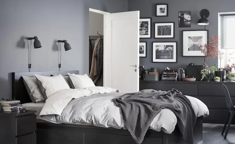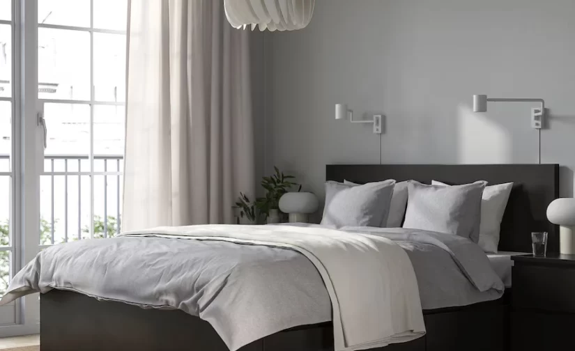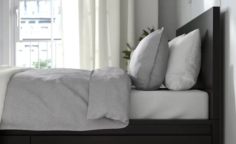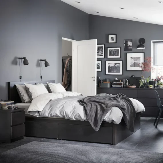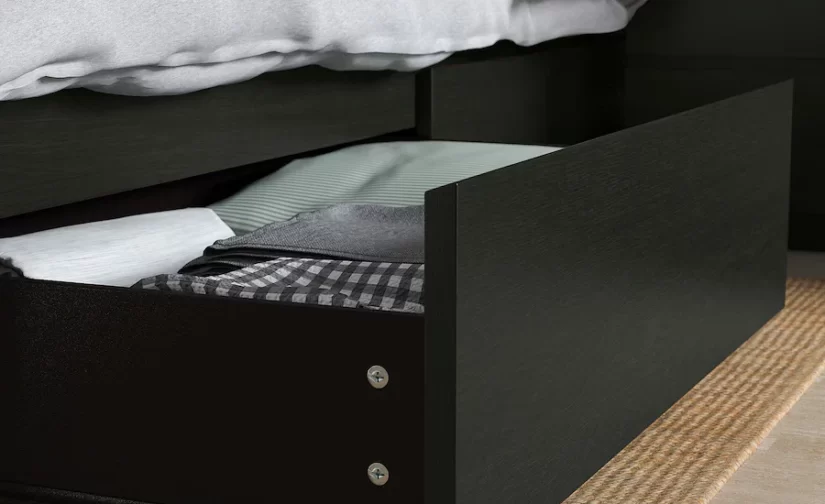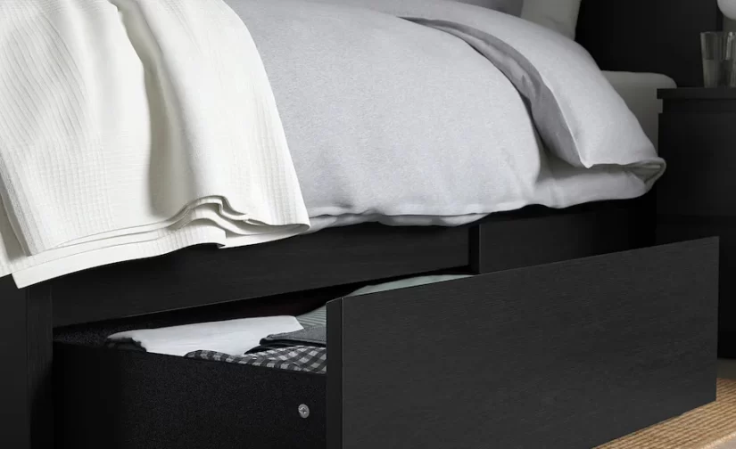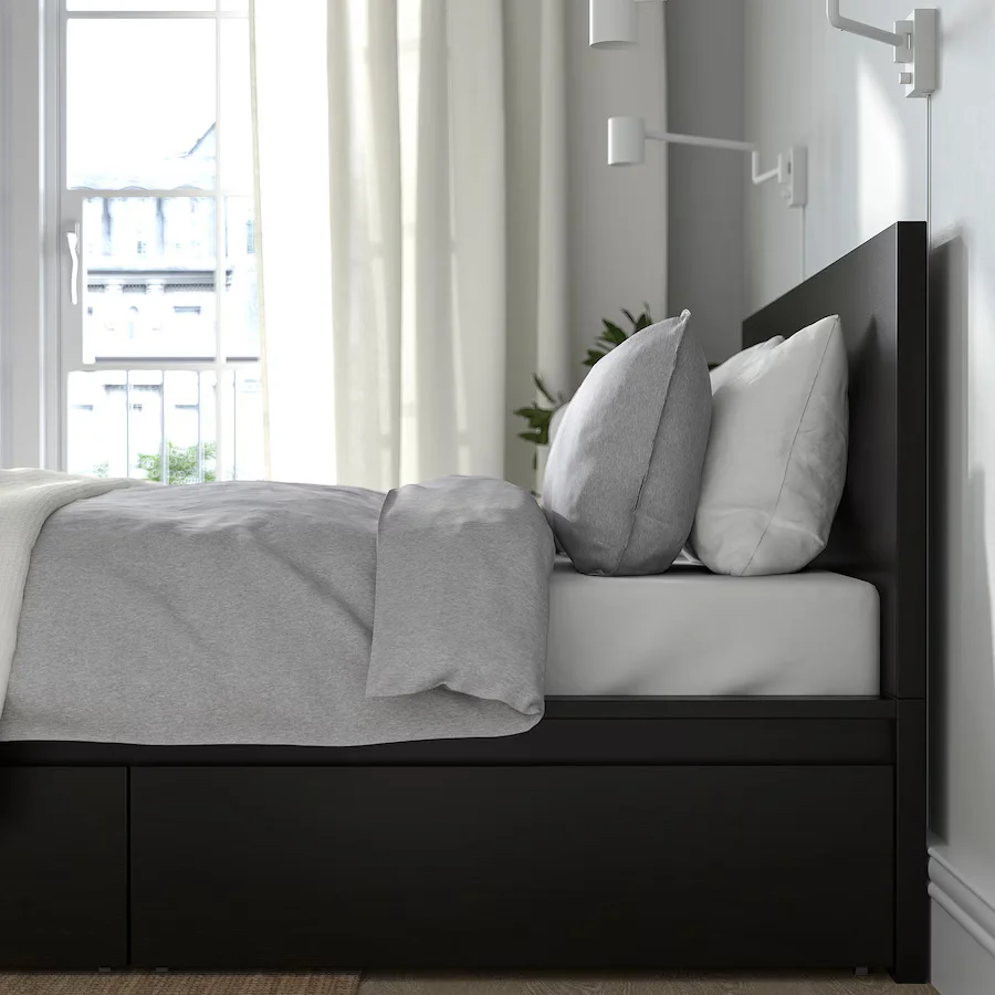 قاب تخت بلند با ۲ جعبه ذخیرهسازی مشکی-قهوهای ایکیا ۱۶۰x۲۰۰ مدل MALM