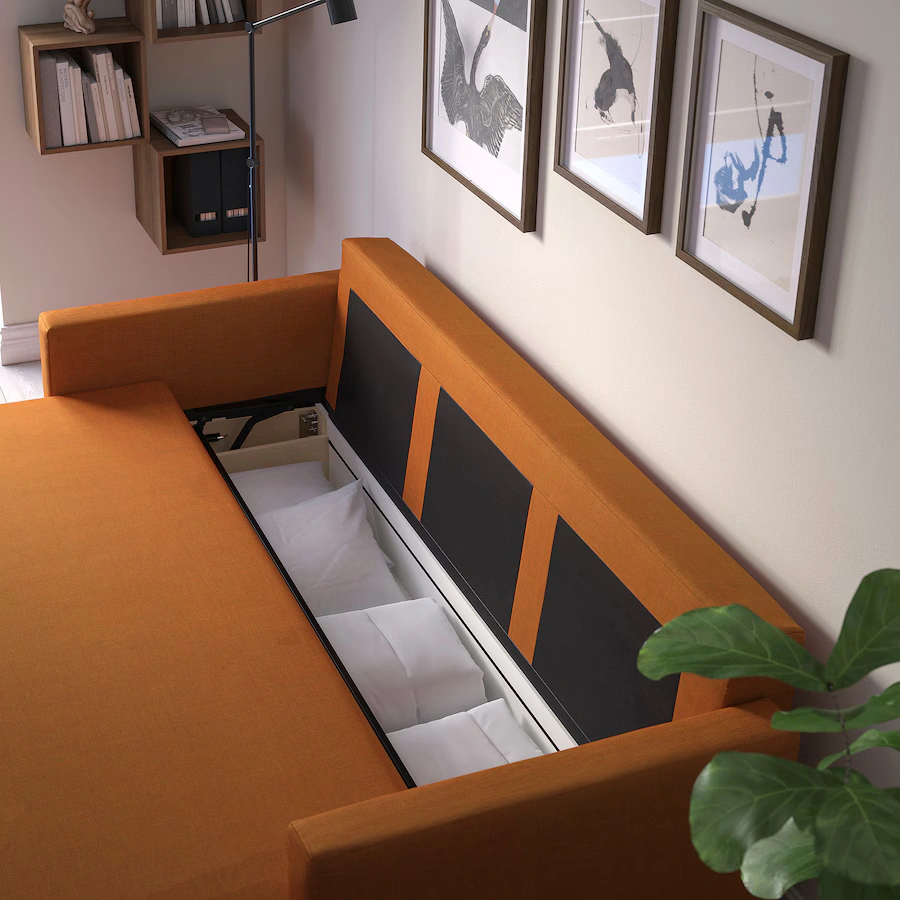 مبل تختخواب شو سه نفره قهوه ای-نارنجی ایکیا مدل FRIHETEN