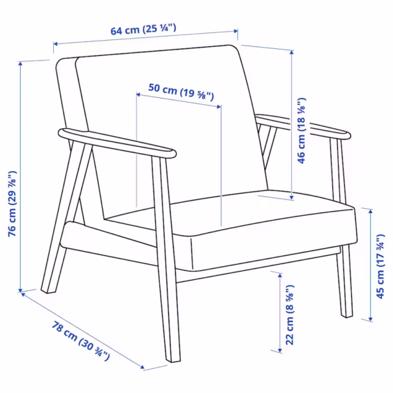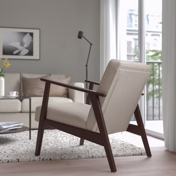 صندلی راحتی EKENÄSET حال و هوای یکپارچهسازی با سیستمعامل شیک را به اتاق اضافه می کند که از طراحی اسکاندیناوی دهه 1950 الهام گرفته شده است. ظاهر کلاسیک در هر جای خانه به کار می رود – و برای سالیان طولانی به شما صندلی های محکم و مستحکمی می دهد.