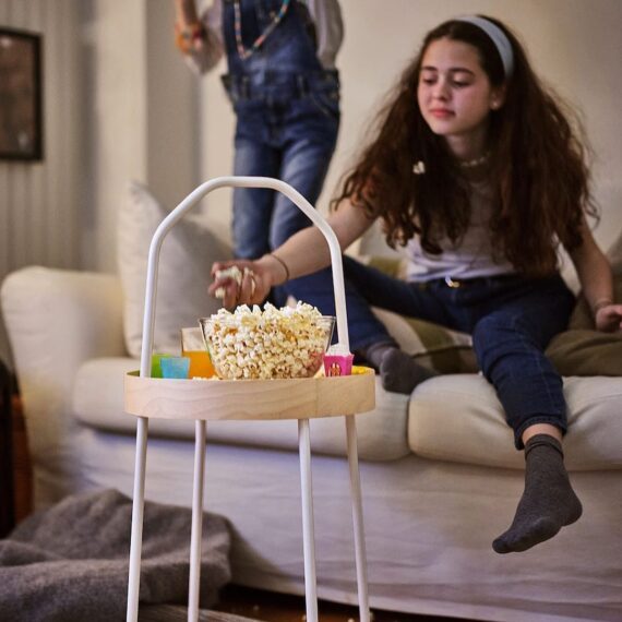 میز کنار مبلی ایکیا دارای یک طراحی فوق العاده زیبا ، سیال، انعطاف پذیر و فعال می باشد که به واسطه ی دسته ی خود قابل حمل می باشد.