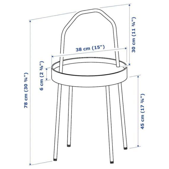 ارتفاع این میز ایکیا با دسته ی آن 78 سانتی متر می باشد.