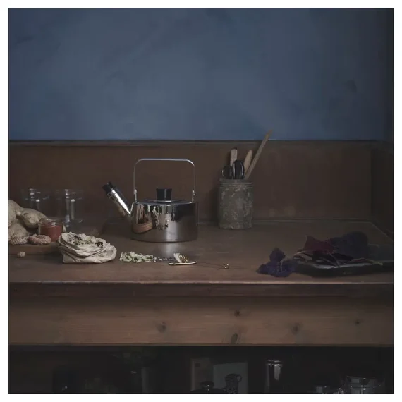 کتری را روی اجاق بگذارید و آب چای یا قهوه خود را بجوشانید. کتری متالیسک هم ظاهر و هم صدایی عالی دارد – وقتی آب به جوش می آید سوت می زند.