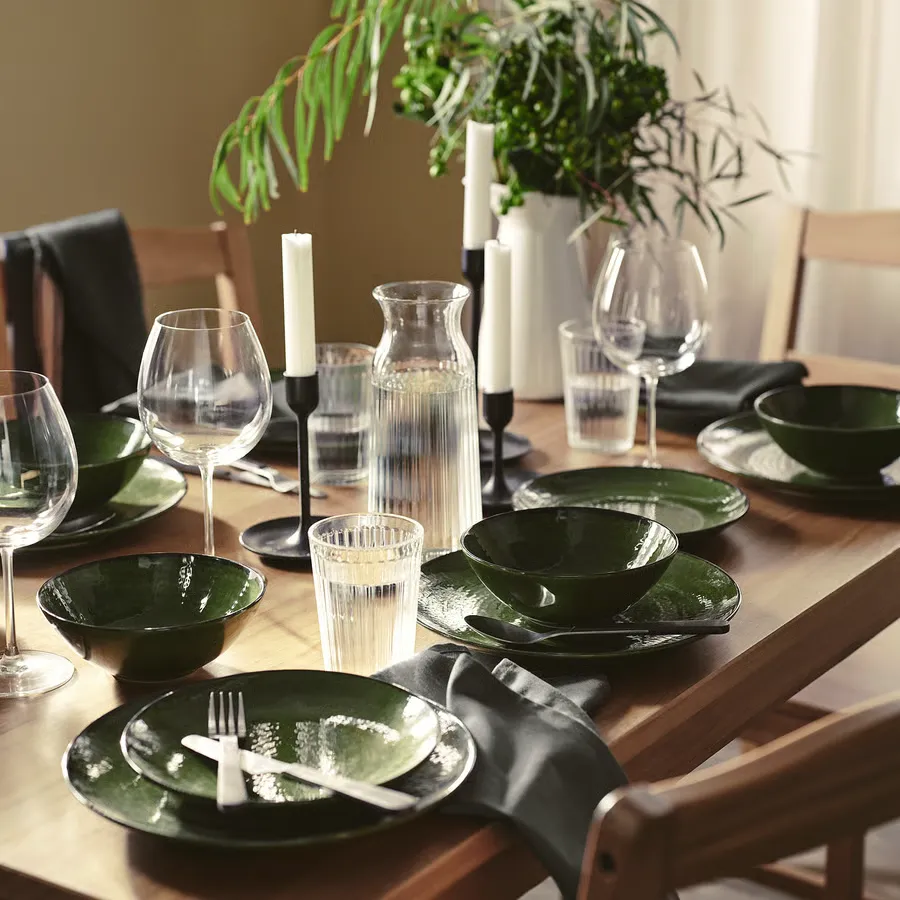 رنگ و شکل سبز جنگلی مجموعه کامل ظروف غذاخوری PELARKAKTUS، جلوهای از طبیعت را به میز شما میآورد و به شامهای روزمره و جشنهای آخر هفته کمک میکند تا به چیزی خاص تبدیل شوند.