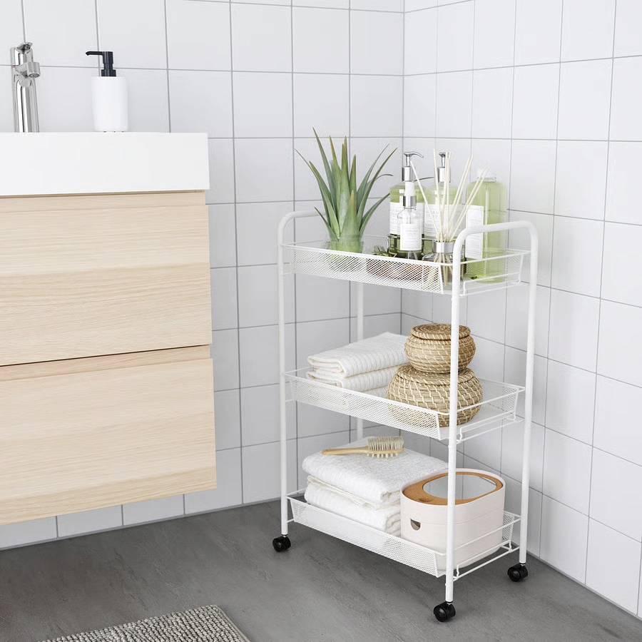 راهی آسان برای اضافه کردن فضای قفسهای به حمام شما تا بتوانید لوازم بهداشتی خود را سازماندهی و نگهداری کنید. این چرخ دستی به جایی که نیاز دارید، میرود و اندازه آن به گونهای است که حتی در فضاهای کوچک نیز به راحتی پارک شود.