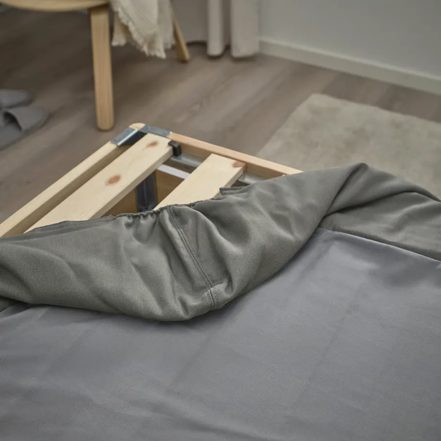 پایه تخت LYNGÖR دارای لت های مسطح برای زیرسازی یکنواخت و یکنواخت برای تشک است.