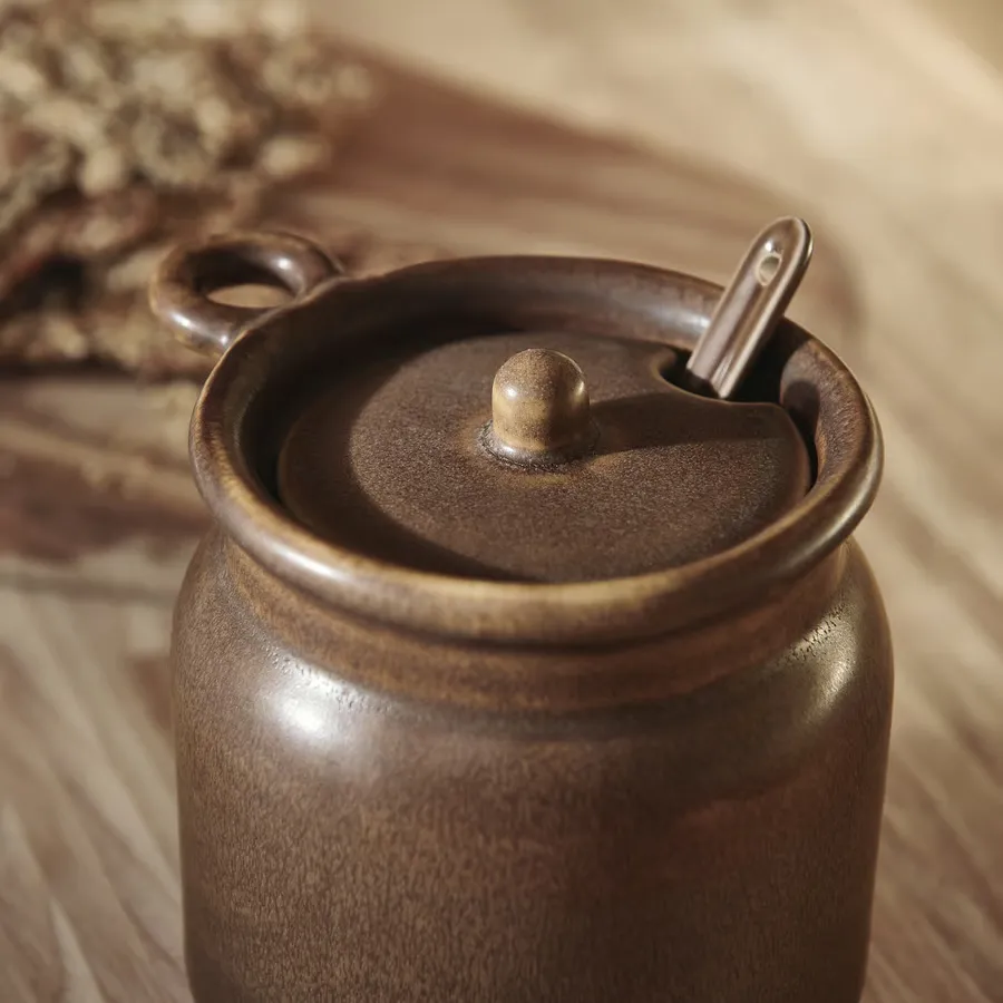 مربا یا مارمالاد خانگی تابستانی را در این شیشه کوچک روستایی با لعابی زیبا سرو کنید. میتوانید قاشق را حتی وقتی درب آن باز است، داخل شیشه نگه دارید یا آن را به عنوان یک وسیله تزئینی از کنار آن آویزان کنید.
