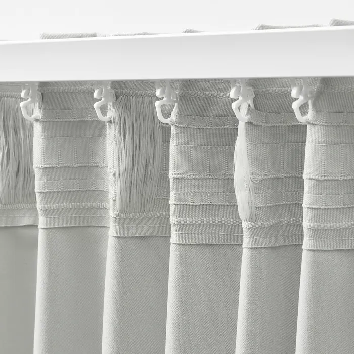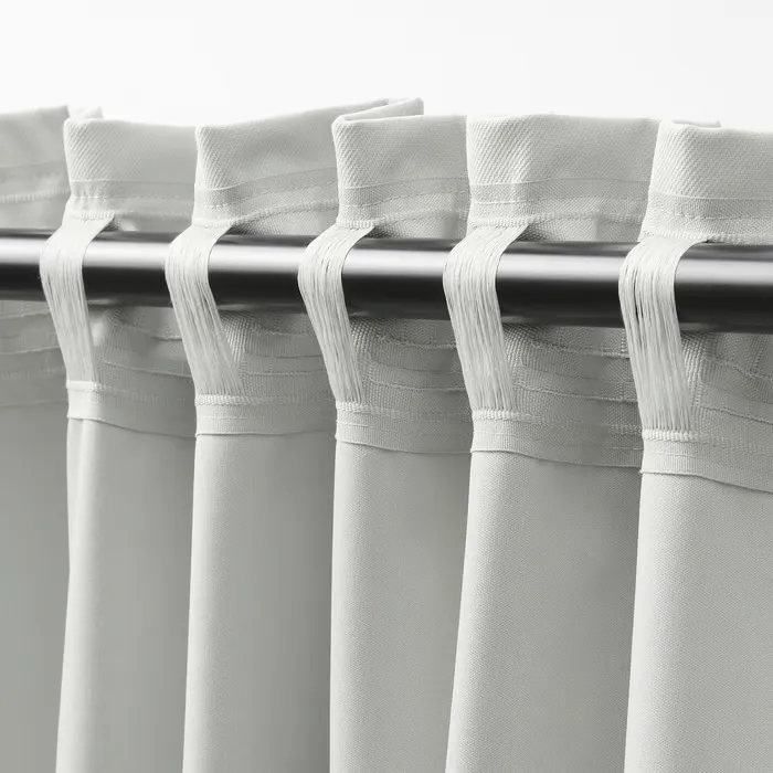 پردههایی با نوار سر به شما این امکان را میدهند که پرده را مستقیماً با استفاده از جیب یا زبانههای میله پرده، روی میله آویزان کنید. همچنین میتوانید پرده را با استفاده از قلاب و گلایدر به ریل ریل آویزان کنید.