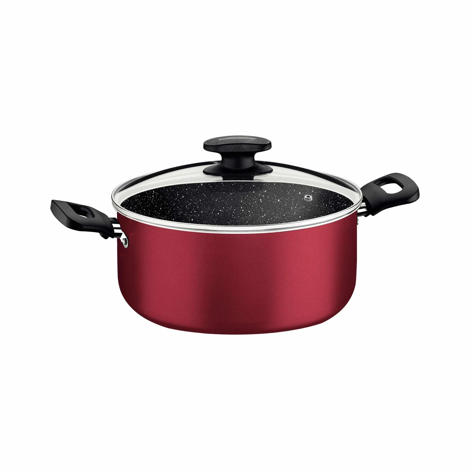 سرویس قابلمه آلومینیومی قرمز ترامونتینا ۷ پارچه با روکش نچسب داخلی و خارجی استارفلون مکس