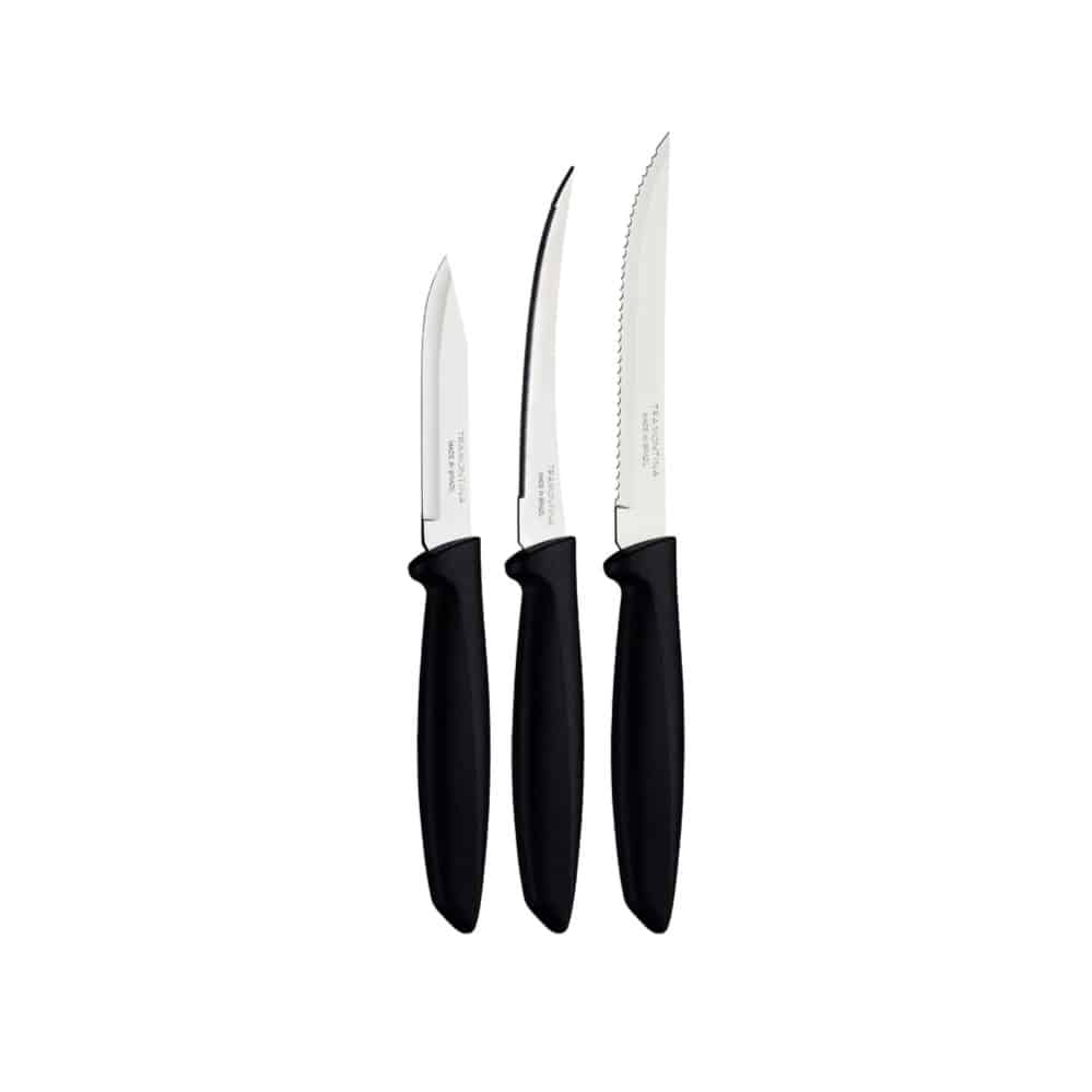 سرویس چاقوی ۳ تکه ترامونتینا پلنوس با تیغه استیل ضد زنگ و دسته پلی پروپیلن مشکی