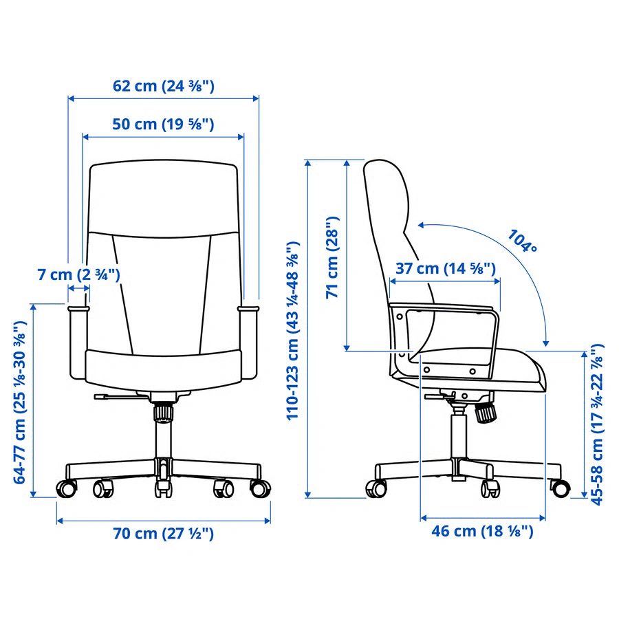 صندلی چرخان MILLBERGET راحتی و کارایی را هنگام کار پشت میز ارائه میدهد. همچنین زیبا و جادار است و به راحتی با دکوراسیون اتاق نشیمن یا اتاق خواب شما هماهنگ میشود.