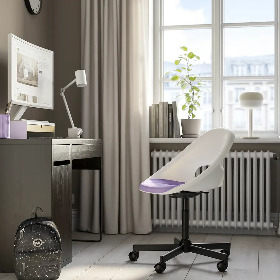 صندلی گردان + زیرانداز سفید مشکی/یاسی ایکیا مدل LOBERGET / MALSKÄR