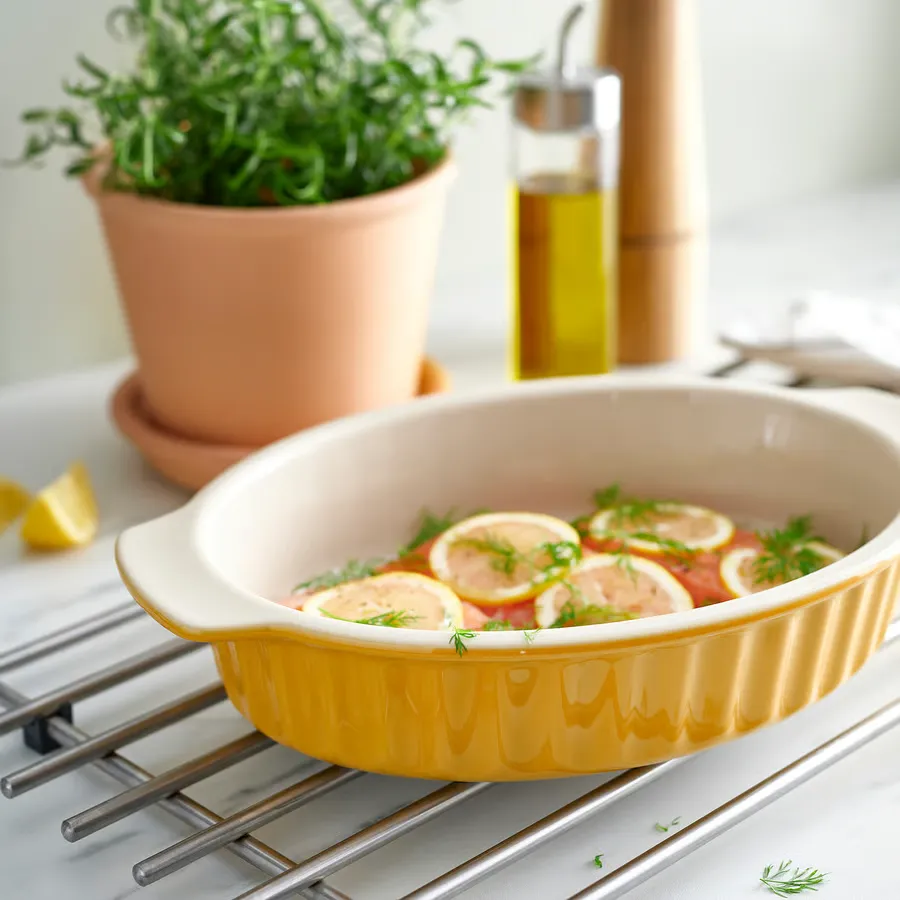طراحی شیاردار به ظرف فر ظاهری زیبا و ماندگار میدهد، بنابراین با کمال میل آن را روی میز قرار داده و از آن سرو خواهید کرد.