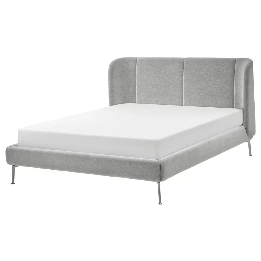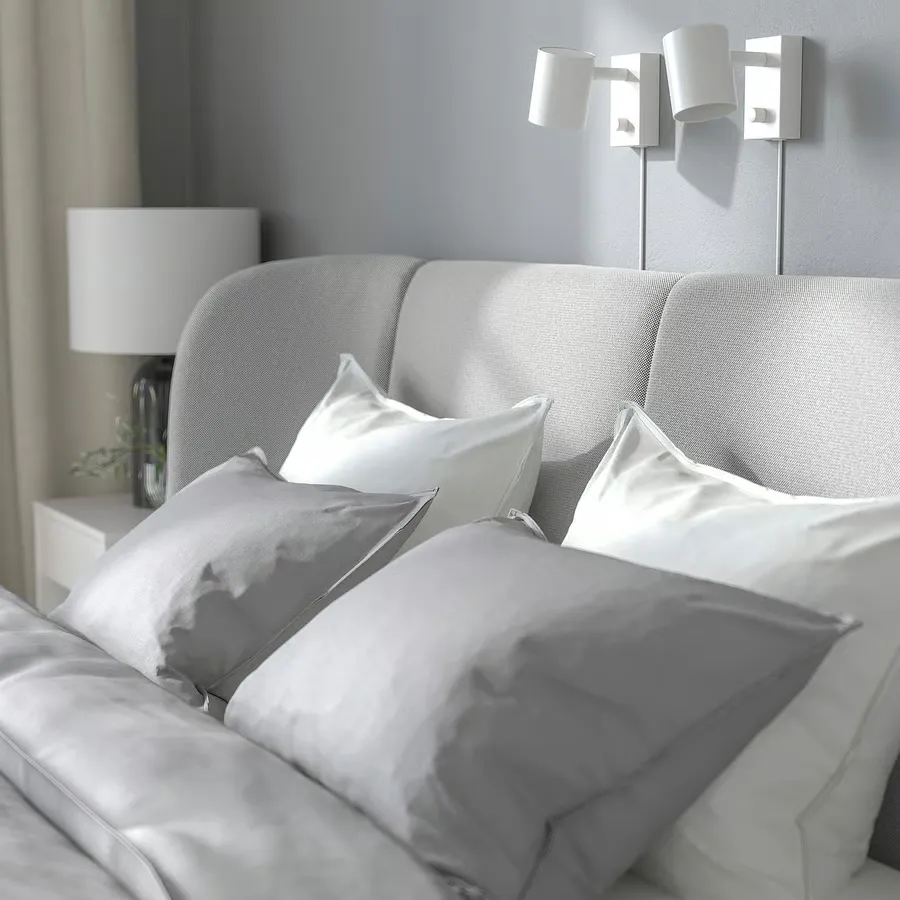 تخت خواب TUFJORD شما را مشتاق خواب میکند. انحناهای جذاب تاج تخت به شما کمک میکند تا آرامش پیدا کنید و صبحهای کسالتباری را که در رختخواب میگذرانید، حتی دنجتر کنید. و روکش نرم و بافتدار آن، احساس راحتی را افزایش میدهد.