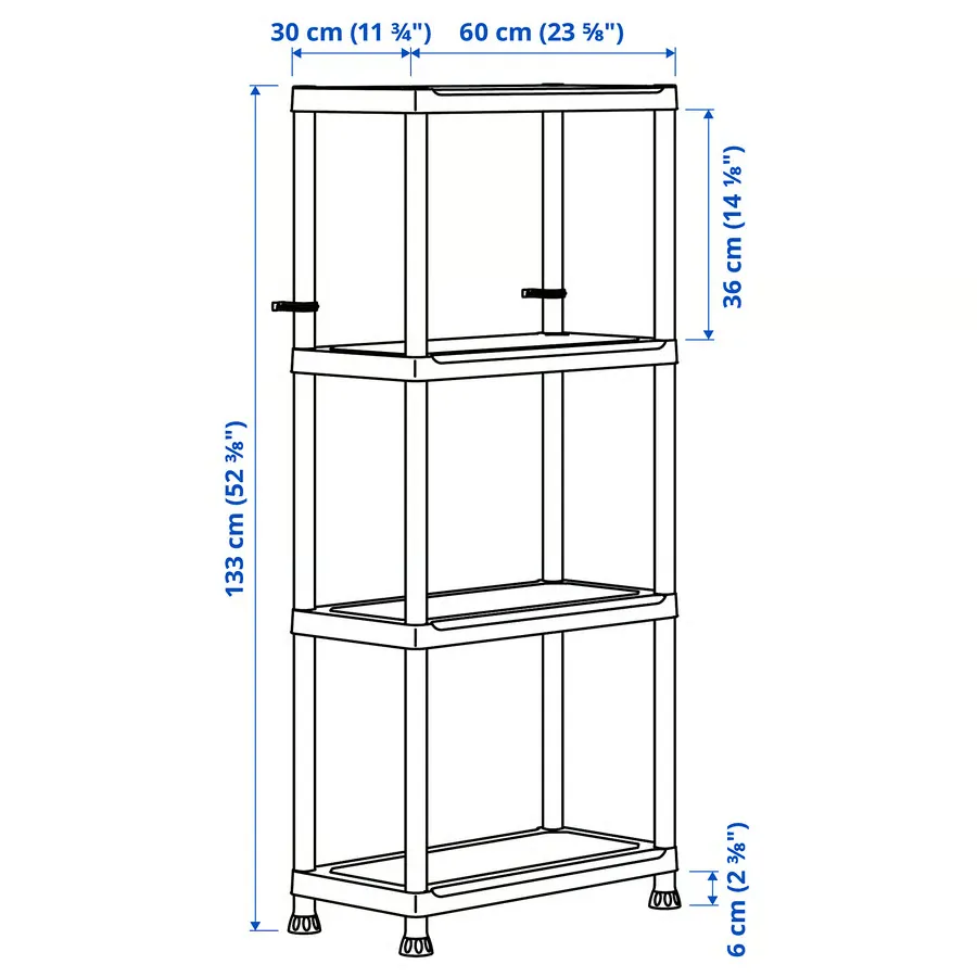 قفسه بندی خاکستری تیره مناسب برای فضای داخلی/خارجی سایز 60x30x133 ایکیا مدل RUNMARÖ