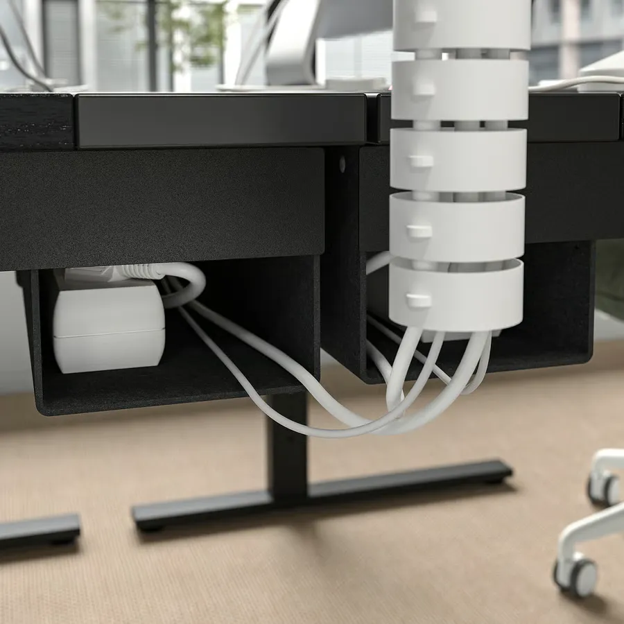 کابلها را میتوان داخل محفظه میز با درب قرار داد و برای مدیریت کابل، از زیر میز به داخل سینی هدایت کرد.