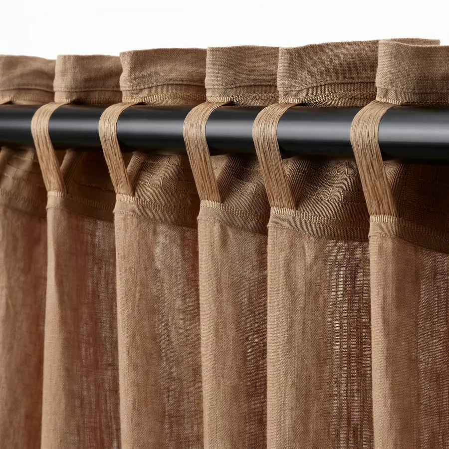 این پردههای بژ تیرهی ماندگار از جنس کتان طبیعی کوبیده شده، حریم خصوصی را حفظ میکنند و حال و هوای غیررسمی به اتاق شما میبخشند. این پارچه برای هر فصلی مناسب است و به آرامی پایین میآید و در عین حال اجازه میدهد نور و هوا از آن عبور کند.