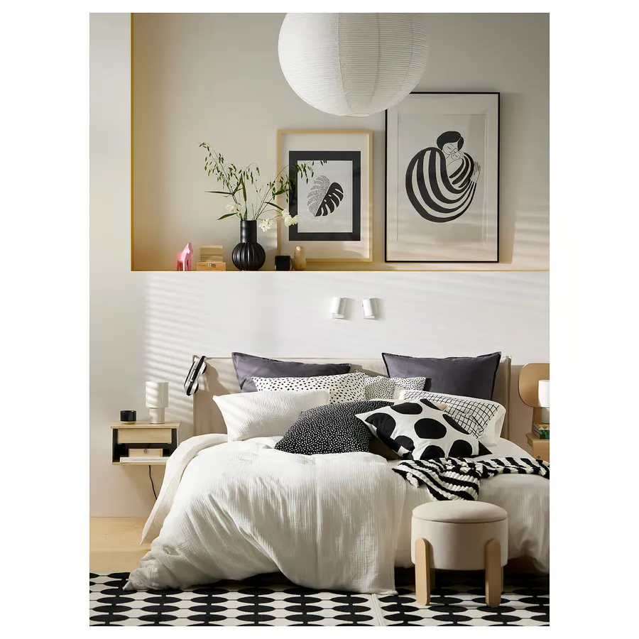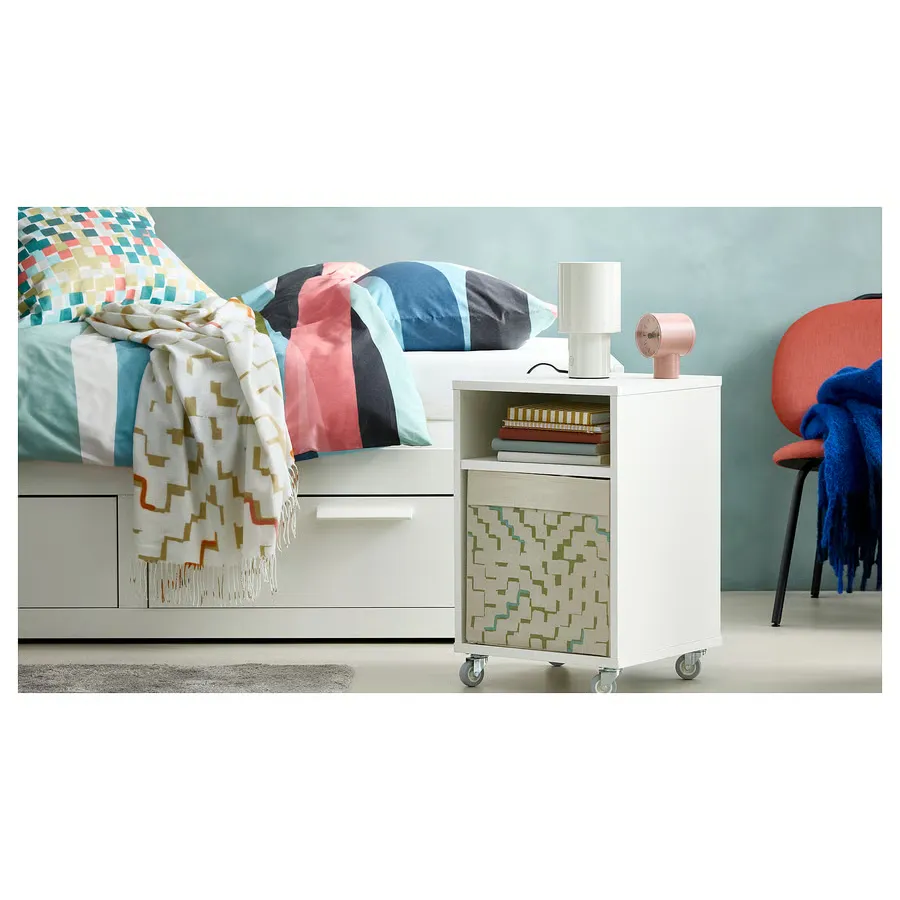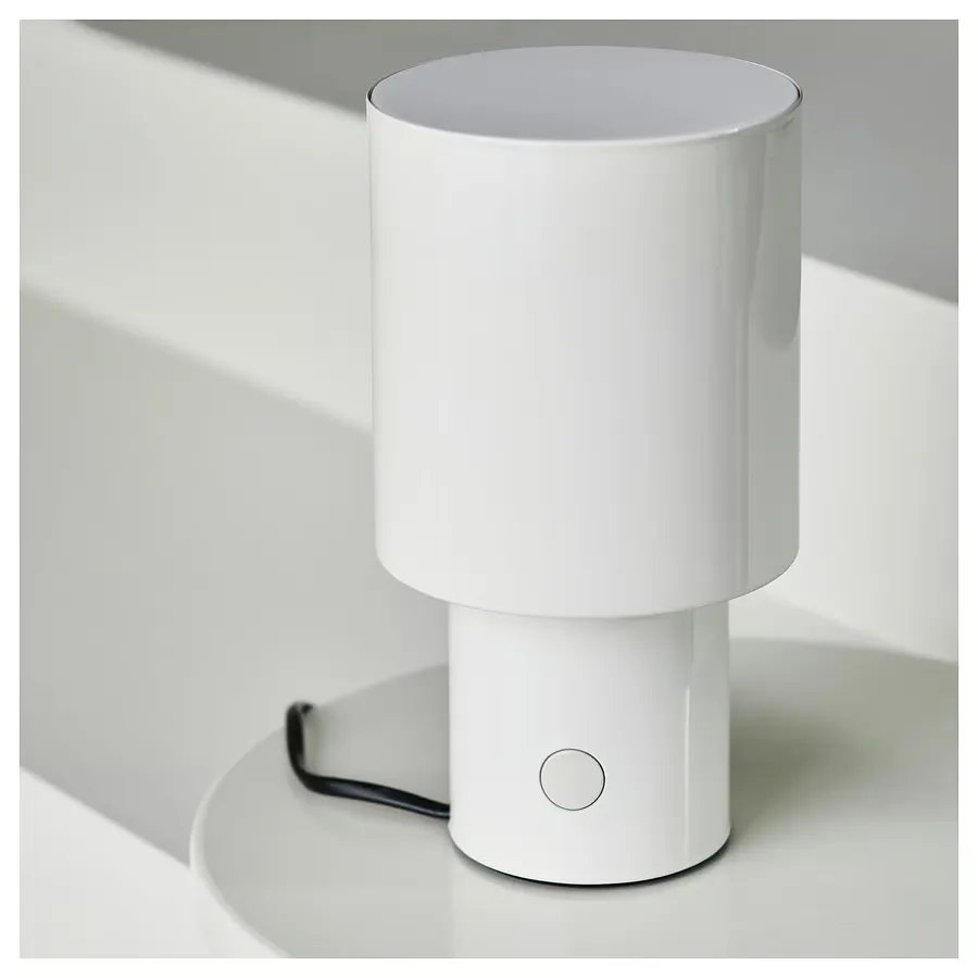 چراغ رومیزی SPETSBOJ فضای کمی را اشغال می‌کند و نور ملایمی را هم به سمت بالا و هم به سمت پایین پخش می‌کند. روشن/خاموش کردن آن با دکمه کوچک کناری آسان است – و اگر می‌خواهید نور را کم کنید، کافیست پرده فلزی را بچرخانید.