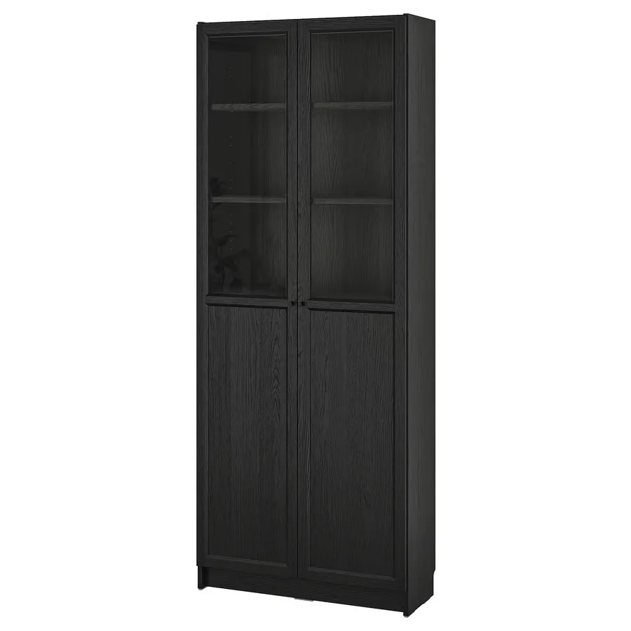 کتابخانه با درهای شیشهای/پانلی مشکی سایز ۸۰x۳۰x۲۰۲ ایکیا مدل BILLY / OXBERG