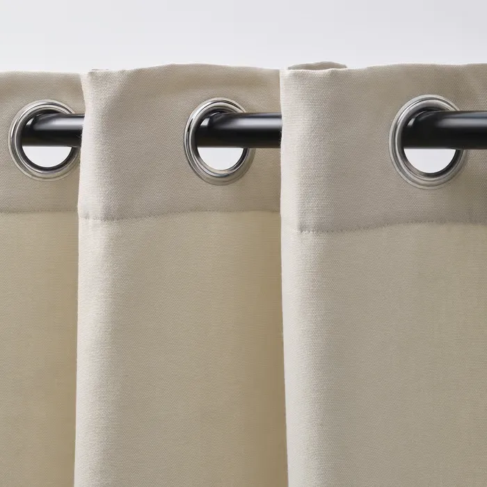 پردههای GINSTMOTT به رنگ بژ به راحتی با هر دکوراسیونی هماهنگ میشوند، نور را به داخل راه میدهند و حس آرامش و حریم خصوصی را فراهم میکنند. جنس پلیاستر بازیافتی سبک و مقاوم در برابر رنگپریدگی با روزنههایی که چینهای گرد ایجاد میکنند.